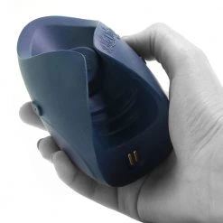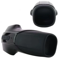 Designed for a completely immersive stroking experience, the Ion’s open-ended shape slips fully over your or your partner’s penis. The super-soft black silicone sleeve comes pre-attached to a sturdy plastic handle that places three simple control buttons at your/their fingertips. You’ll see a slightly raised oval in the center of some sexy ribbed texture – this is the Pleasure Air sensor, and it should be positioned under your/their frenulum (the area of the penis where the head meets the shaft). You’ll be able to squeeze the sleeve to place more pressure on the penis inside.