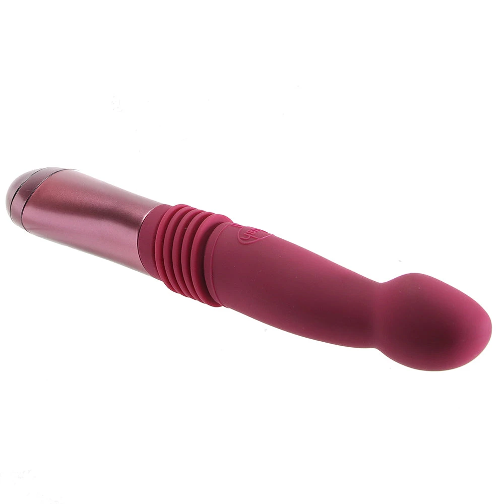 Featuring a non-representational shape for when you’re not into or not in the mood for a penis, Trixie’s shaft is silky, strategically swollen, and steadied atop an ergonomic handle. You’ll want to grab tight to that handle when Trixie starts going, because this vibrating thruster is powerful. Very powerful. Not only does the shaft thrust up and down at three possible speeds up to 1.25 inches, it also vibrates in synch. One button blow the handle controls all.