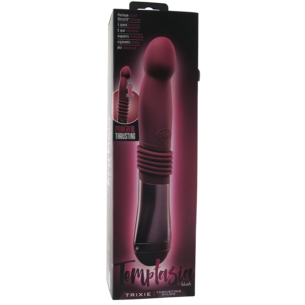 As much as we (and plenty of other folks, by the way) adore vibrators, vibrating dildos and other buzzy, throbby things, sometimes, they just don’t do the trick – especially when you or your partner are, shall we say, lusting for some thrusting. Trixie from Blush’s Temptasia collection vibrates, it’s true, but it also thrusts. A lot.