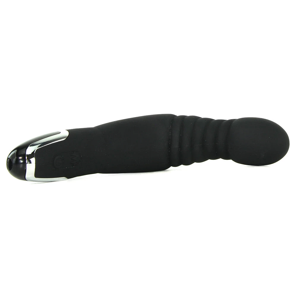 Rounded at its swollen tip, the Ridged P reaches deep, angling forward to tickle the male G and otherwise. Eight patterns of pleasure buzz and throb evenly throughout at the touch of a button.