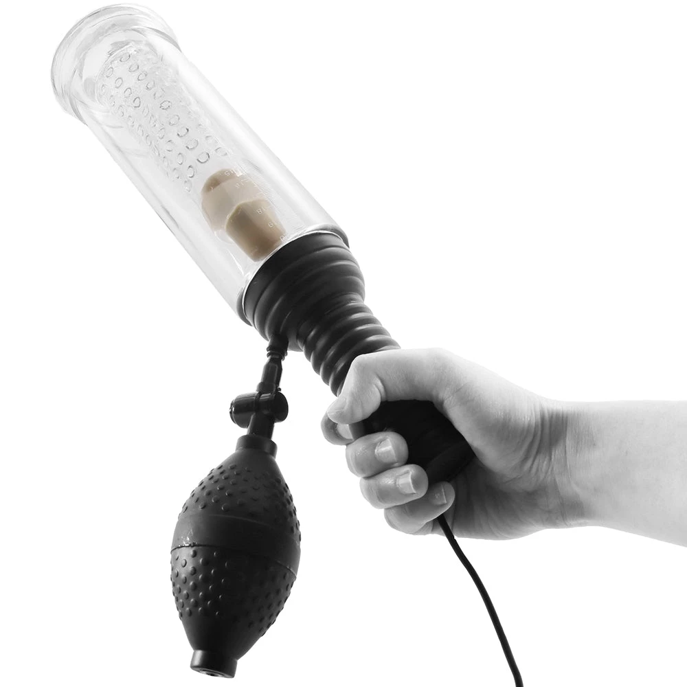 You’ll also be able to reap the great-feeling benefits of steady, powerful vibration if you’re in the mood. A wired controlled activates and increases/decreases the vibration from a vibrator placed up near the top if the Power Pump’s inner sleeve.