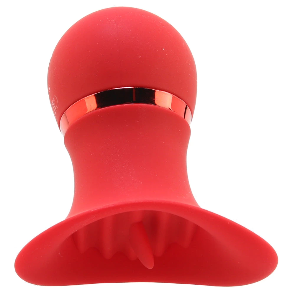 Firm and stable in hand – yours or a playmate’s – the Charmer’s cupped, widespread tip fully surrounds your or your playmate’s clit, inner lips and beyond. Inside the cup, rows of silky silicone ribs and a tiny tongue wait to quicker, flicker and pulse in 12 possible rhythms. Cue up 12 throbbing vibe modes using a single push button just above the rounded, easy-grip base.