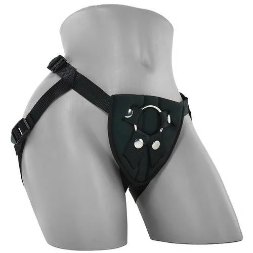 Positioned behind the plushy yoke, a built in slot holds any favorite bullet or mini vibe. Adjustable nylon waist and thigh straps easily cinch to fit most sizes.