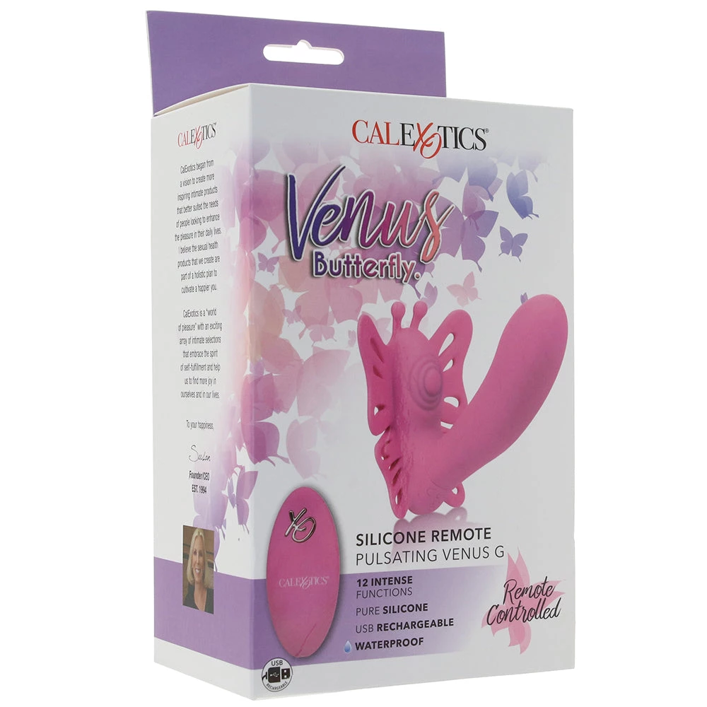 Does the idea of focusing tons of sensation on G-spots, P-spots and a whole lot of other inner places while targeting outie sweet spots, too tickle your fancy? Great! CalExotics (optionally) wearable Venus Butterfly Pulsating G Vibe vibe lets you or your partner take full advantage of a curvy shape, a totally unique in-and-out thumping motion, and a swollen tickler ready to ravish clitorises or perineums.