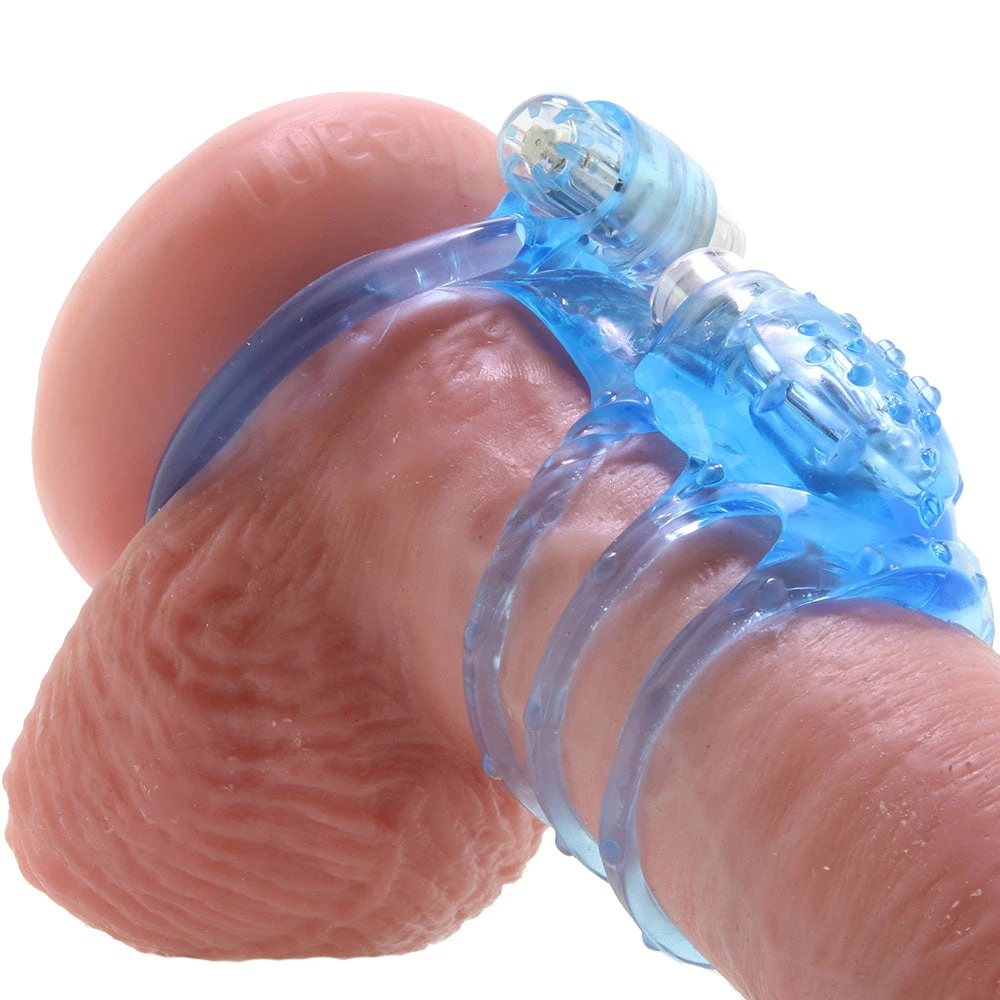 Stretching easily over the shaft, the Zinger holds steady thanks to a stretchy support strap looped around back of your/their balls plus two more looping over the shaft. That sexy constriction effect, not to mention the snugness around the shaft team up to help slow ejaculation. Meanwhile, two supercharged little bullet vibes up top and toward the base buzzes and throbs in the path of a partner’s external sweet spots. Vibration powers on with the touch of a button.