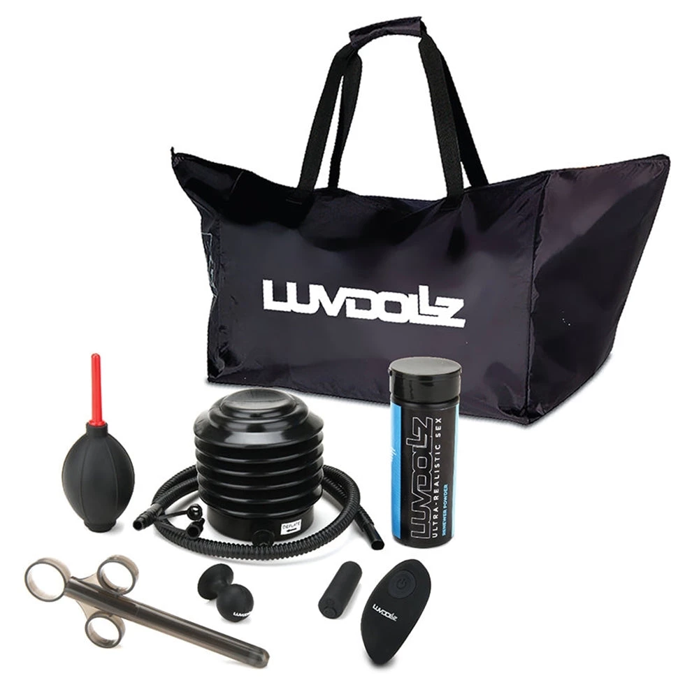 Making sure your experience is as sexy and seamless as possible, a hands-free phone holder is also included. It’ll prop up your phone for a perfect view of your chosen masturbation inspiration. But wait, there’s more! An easy pump is also included, along with a deep cleaning douche can be used to get right into your LuvDollz when it’s clean-up time. A handy lube applicator is included, too, which you can use to shoot lots of slick slipperiness deep inside either or both orifices pre-play.