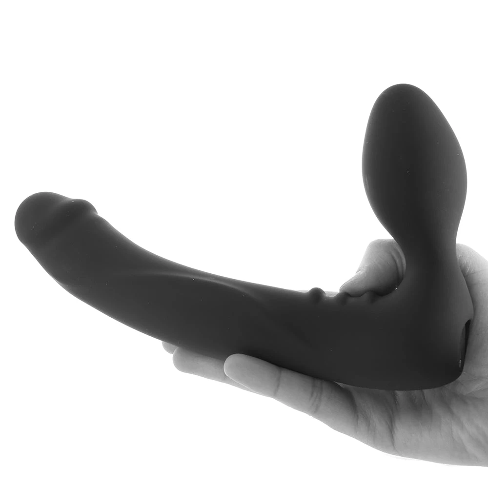 Strap-free, the Pegasus’s silky, silicone penetrator is held in place by your or your partner’s pelvic floor muscles. A big, g-spot targeting bulb fits securely very pleasurably in the vaginal canal, offering up a sturdy grip point. In front of the bulb, there’s a thick patch of sexy texture to rock and grid against. Oh, and it vibrates!