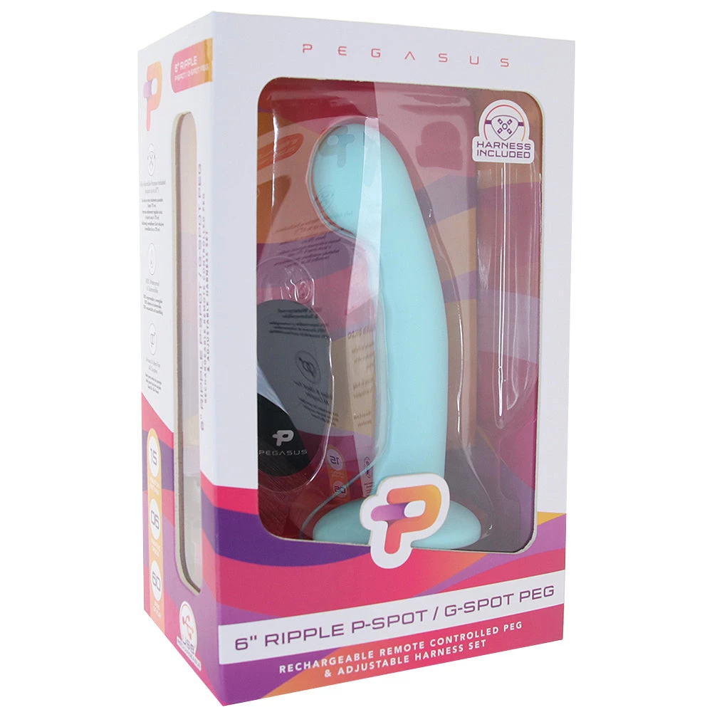 The vibrating dildo included in the Pegasus Curved Ripple 6″ Vibrating Pegging Set is extra easy to maintain – just wash up before and after use with some warm soapy water or a good toy care fluid/foam. Always choose a great quality water-based lube if you’re craving some extra slipperiness – please avoid contact with silicone lubes and other silicone toys. Fully waterproof.