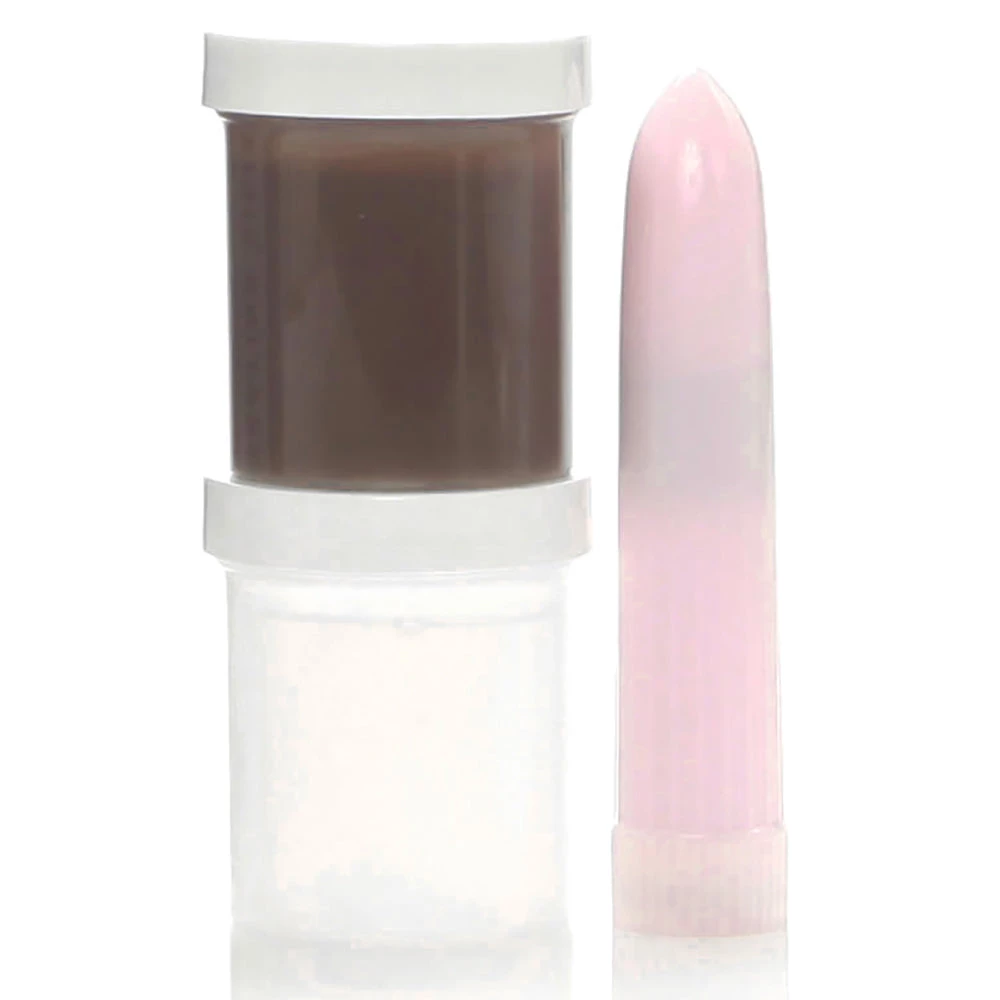 Full instructions are included, but the basic process is simple, mix up the molding powder and water in a bowl, and pour into the tube that doubles as packaging until you’re ready to use it. Since the penis you’re using has to be fully erect – the harder, the better – use your favorite means to that end, and then have him insert himself into the molding powder mix and hold the tube steady for a minute or two until it has set.