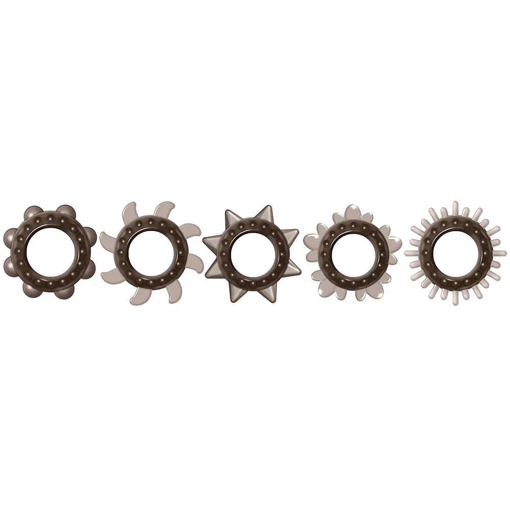 Able to be stacked over your or your partner’s shaft, worn over base and balls, or even used as a progressive ball stretcher, all of the rings hug tight to help maintain and enhance an erection, or add extra texture to a dildo or strap-on.