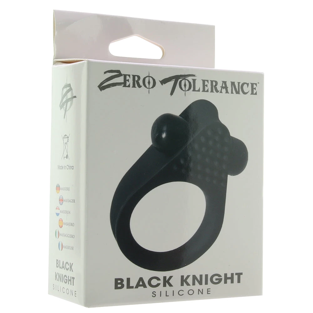 Lending lots of sweet-spot targeting texture and a snug, secure fit to fun-loving sexy endeavors, the Black Knight Vibrating Cock Ring combines a classic silicone erection enhancer with quiet single speed vibration.