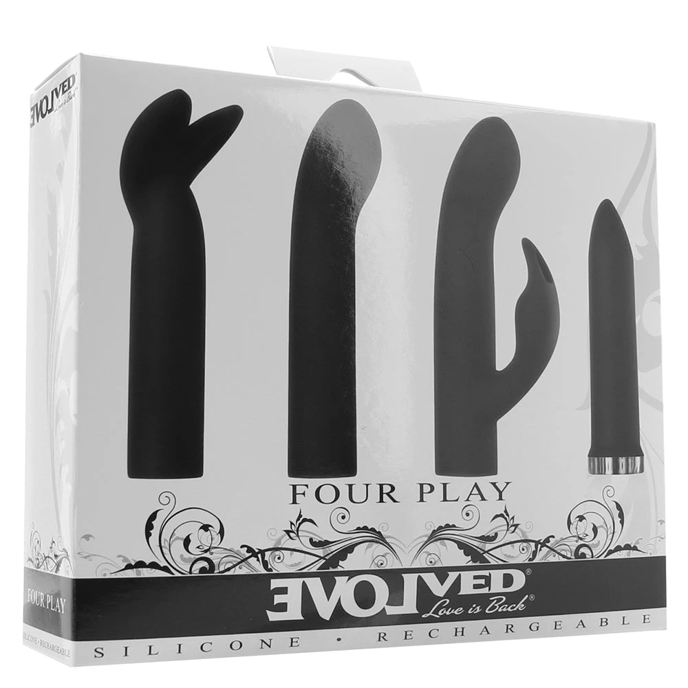 Indecision. It happens to all of us, every now and then. We can’t help you with many of those tough (or just irritating) decisions, but we can make deciding which sex toy to pull out of the drawer a littler easier. Evolved’s Four Play Bullet and Sleeve Set vibe contains three silky silicone pleasure possibilities in one handy package. There, you don’t have to decide at all!