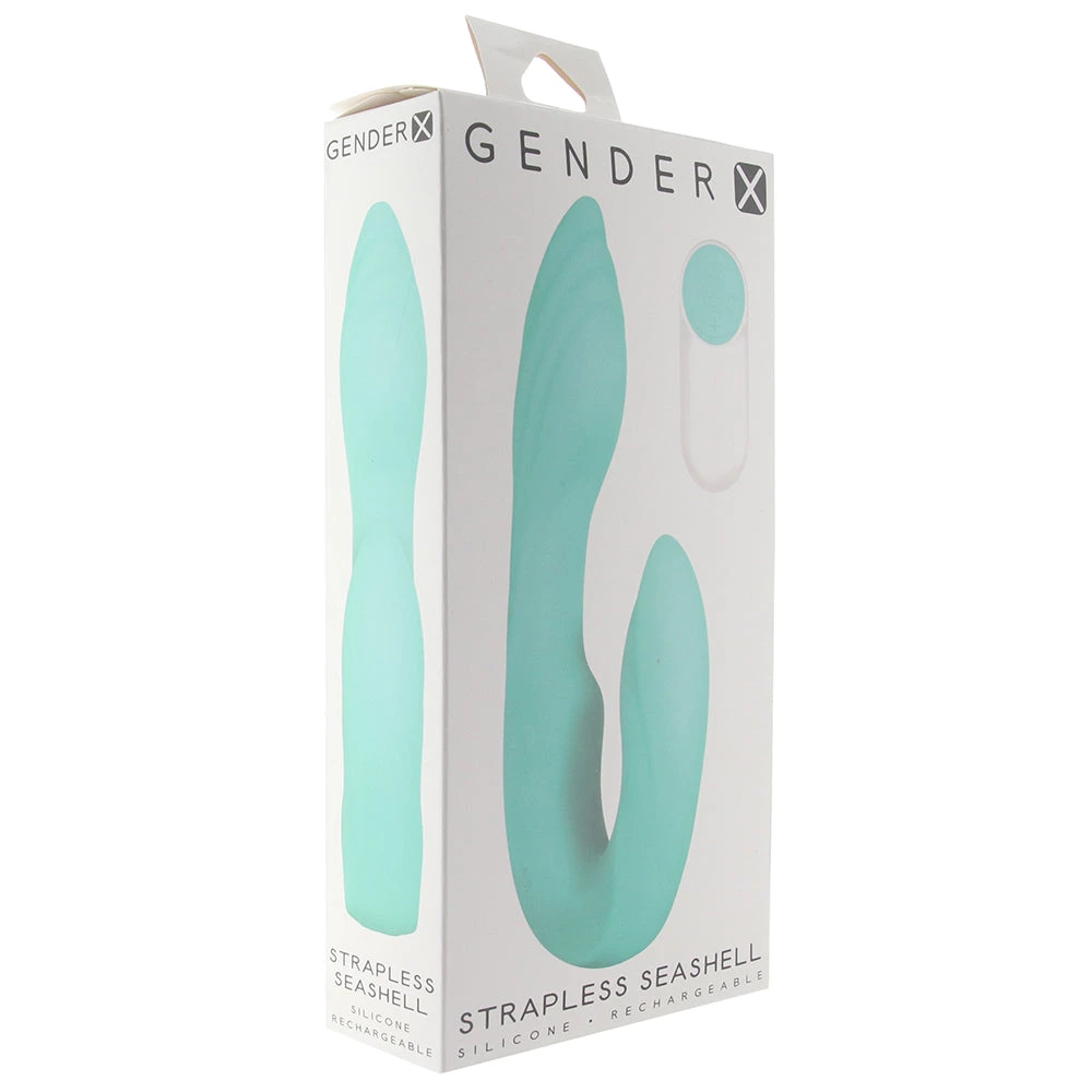 In silky smooth, hypoallergenic silicone, the Gender X Strapless Seashell Vibrating Strap-On is safe for sensitive skin and a breeze to clean. Scrub it gently under warm soapy water before and after playtime, or use a favorite toy care fluid/foam. This vibe can be safely used with any favorite water based lube, but please keep it way from silicone lubes and other silicone toys/products. Remote requires 1 CR2032 cell battery (included). Waterproof.