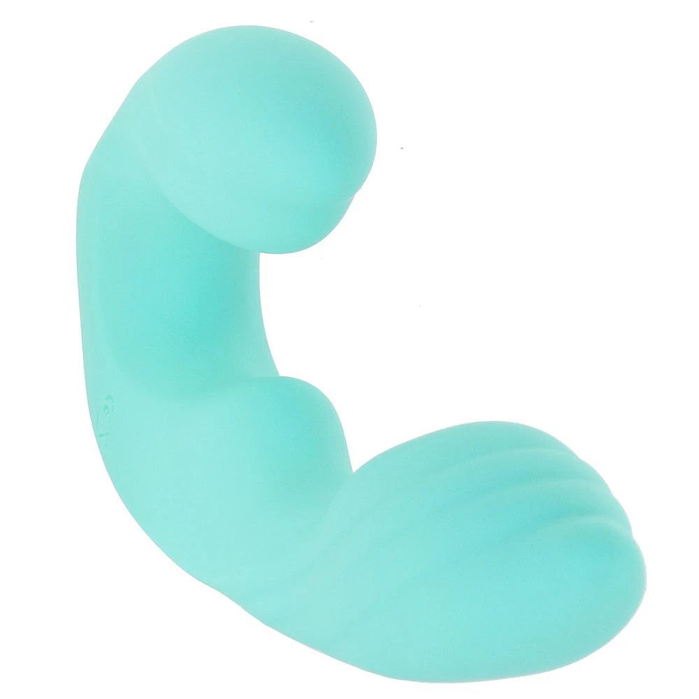 At the opposite end of the Seashell, the silky silicone probe is nice and long, offering lots of room for super-deep insertion; an upward tilt to the tip naturally targets a partner’s g-spot, prostate and beyond. Control five speeds and seven patterns modes of vibration at either end using buttons on the vibe itself, or with an included wireless remote.