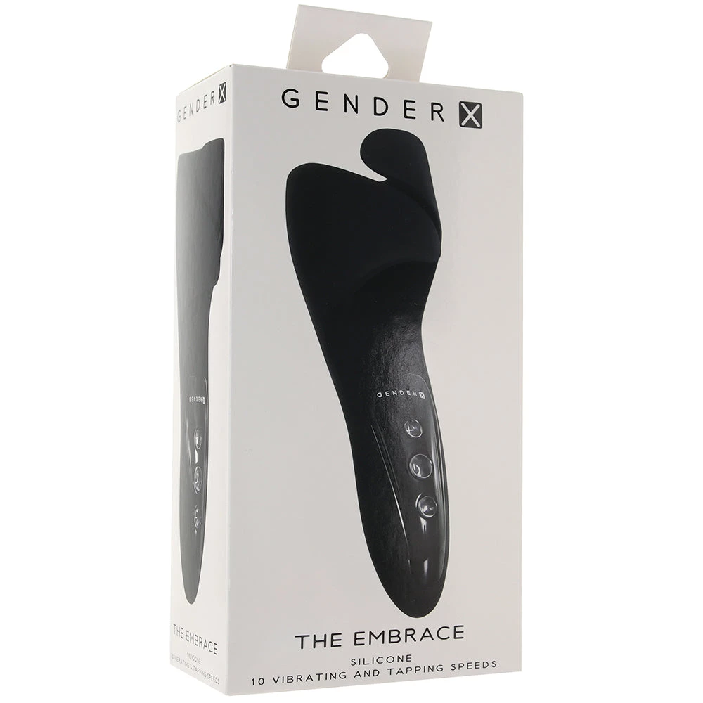 So, before we properly introduce The Embrace Stroking Stimulator from Gender X and all its very, VERY enjoyable functions, we need to talk about the unique design of this ultra versatile pleasure tool. At the tip of a firm, lightweight handle, The Embrace features two soft, flexible silicone wings that curve over and around your/their shaft or other outer sweet spot(s), conforming easily and comfortably to just about any shape. It’s literally a stroke of genius!