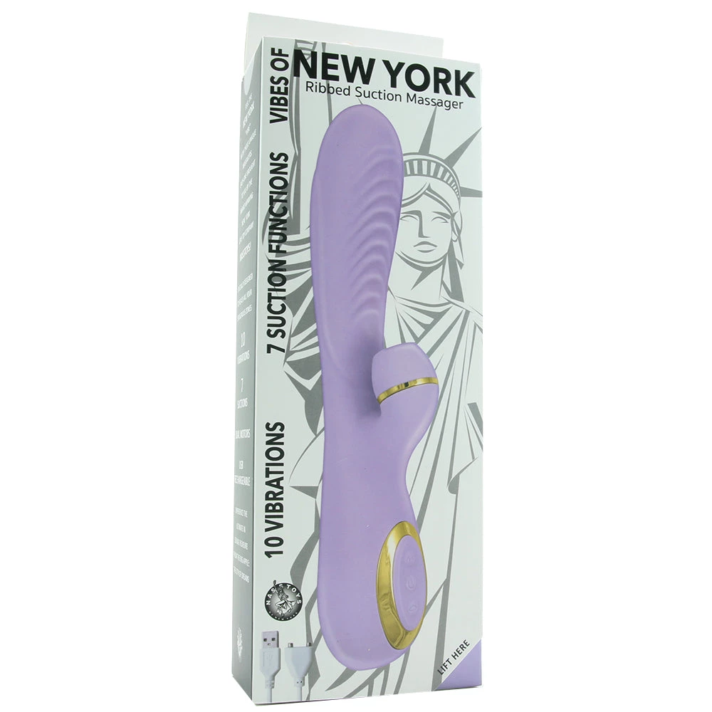 Hopping aboard the hottest pleasure train around on its way to the big city (or into your bedroom), the silky Vibes Of New York Ribbed Suction Massager offers up ten pulsating modes of classic vibration PLUS another seven rhythms of toe-curling, eye-rolling, headboard-ratting clitoral suction for very, very good measure.