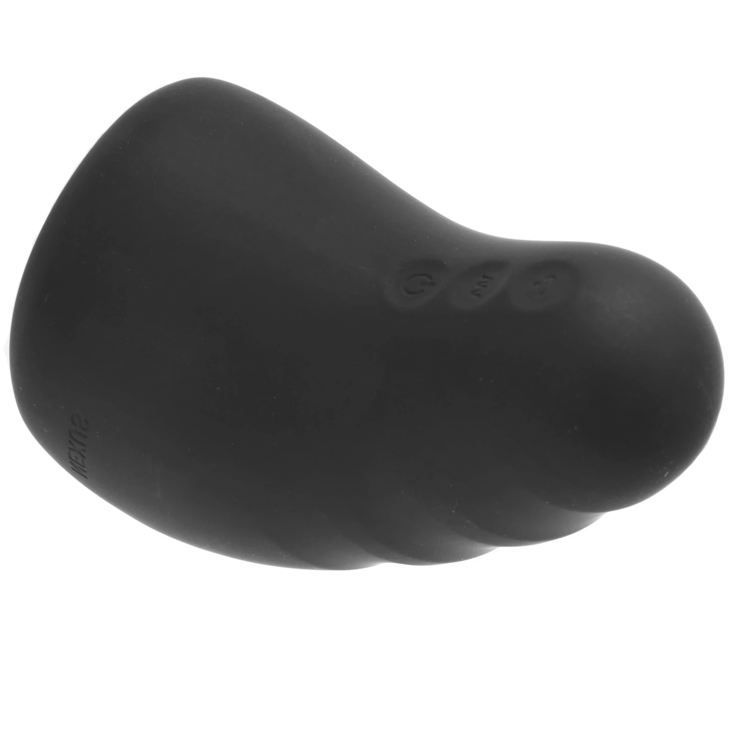 Let’s start at the beginning. The Eclipse is not meant for deep-diving. In smooth back silicone with an ergonomic horn(y) shape, the shallow entrance fits over your or your partner’s sensitive frenulum, or tip. Inside, a slightly raised, sexily ribbed little lip moves up and down thanks to a tireless stroking mechanism embedded below.