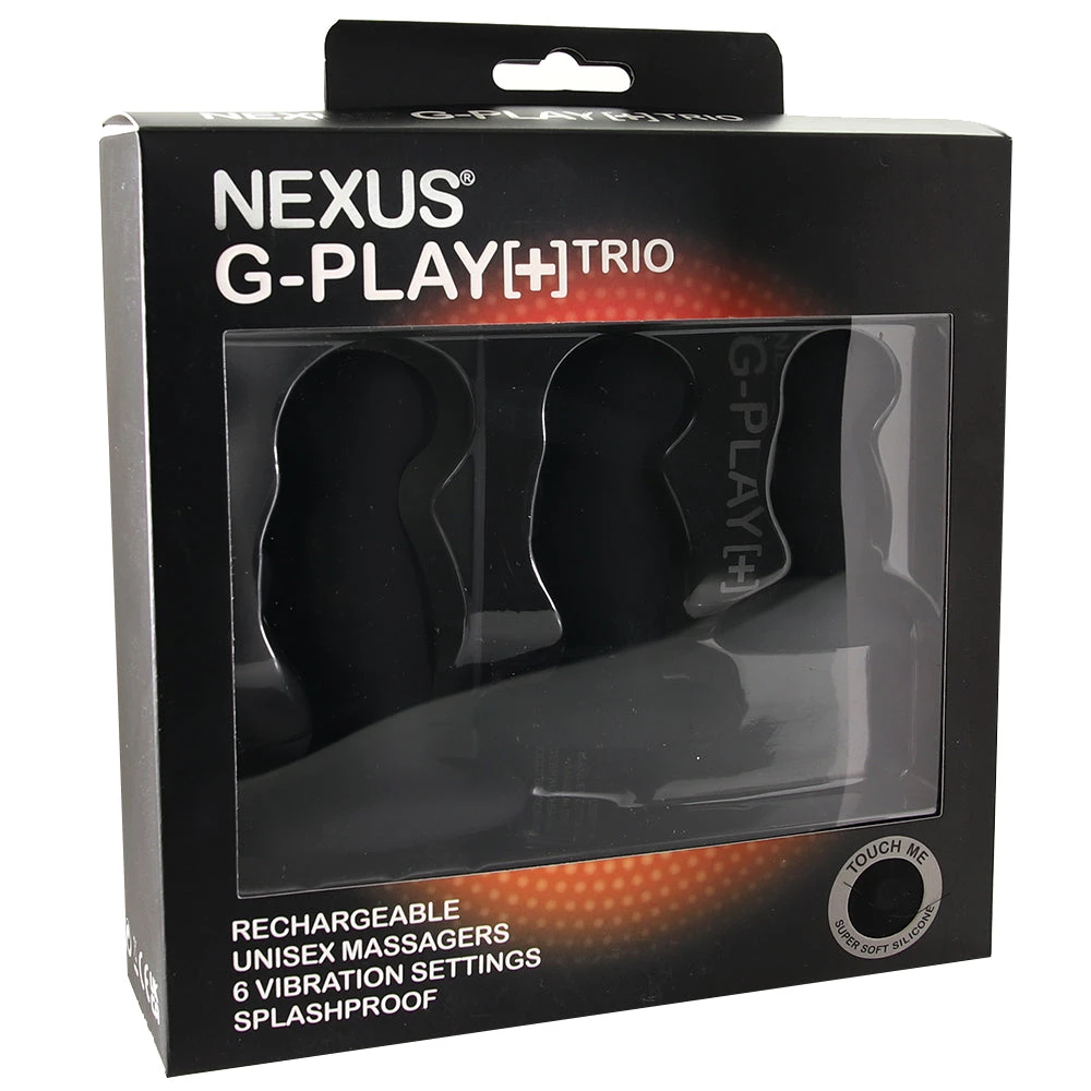 Turning their attention and their strategically swollen heads to P-spots and G-spots with equal (and orgasmic) success, the G-Play+ Trio Massager Set offers you and perhaps your partner(s) three strategically shaped, powerfully vibrating inner massagers that’ll feel great no matter which erogenous zones you or they may be sporting.