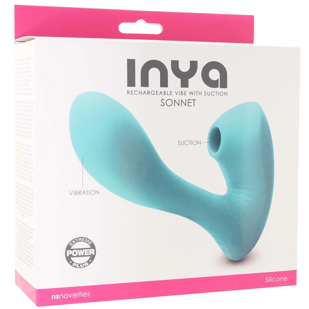 In 100% silicone, the Inya Sonnet G-Spot Vibe with Suction is body safe, phthalate free and extra hygienic. Wash well before and after playtime using warm soapy water or a good toy care fluid/foam. If you’ll be pairing a lube with this vibe, please use a favorite good quality water-based formula. Please avoid contact with silicone lubes, and store away from other silicone toys. Sonnet is splash-proof, but shouldn’t be fully submerged.
