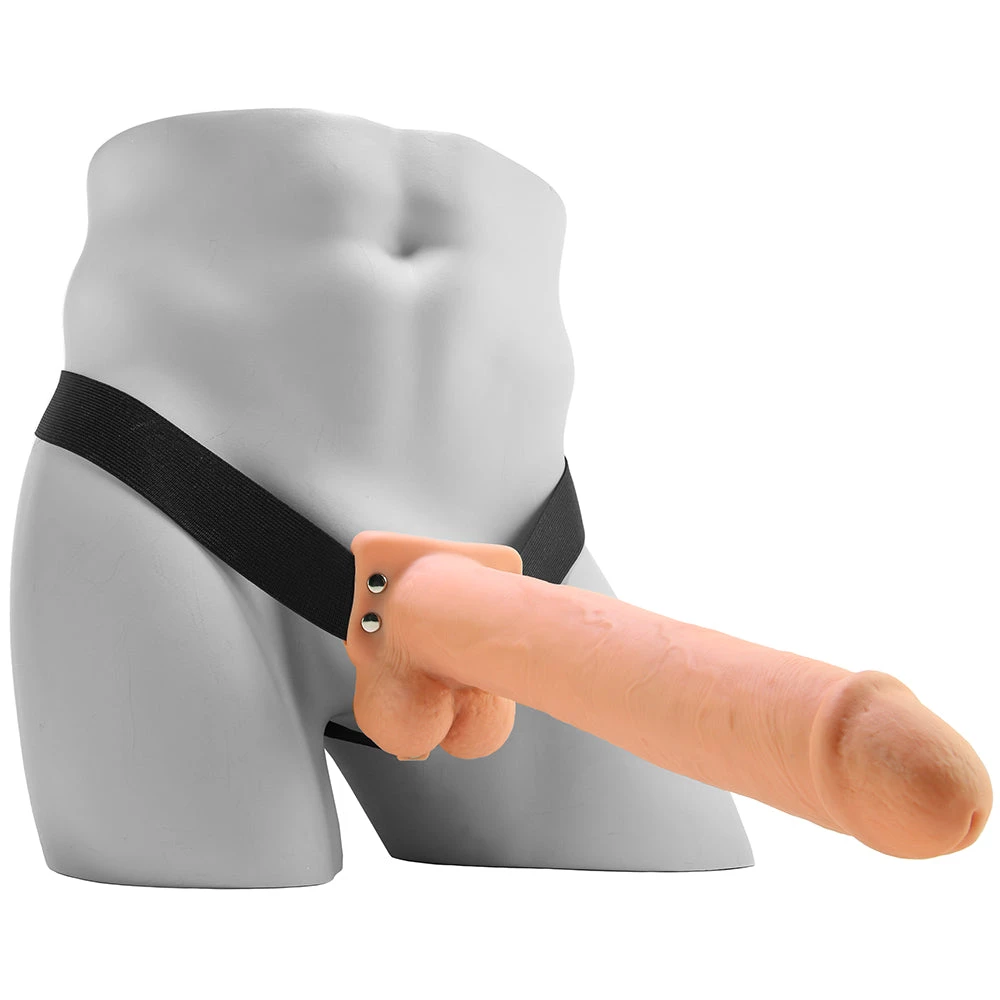 In phthalate free, low maintenance PVC (minus the waist and back-band), the 11″ Hollow Vibrating Strap-On is extra easy to clean. Wash each piece using warm soapy water or a good toy care fluid/foam before and after use. Compatible with any favorite water or silicone based lube. Although it’s splash-proof, this play piece is not rated to be fully waterproof, so keep it as dry as possible. Please read measurements carefully, this is a large dildo!