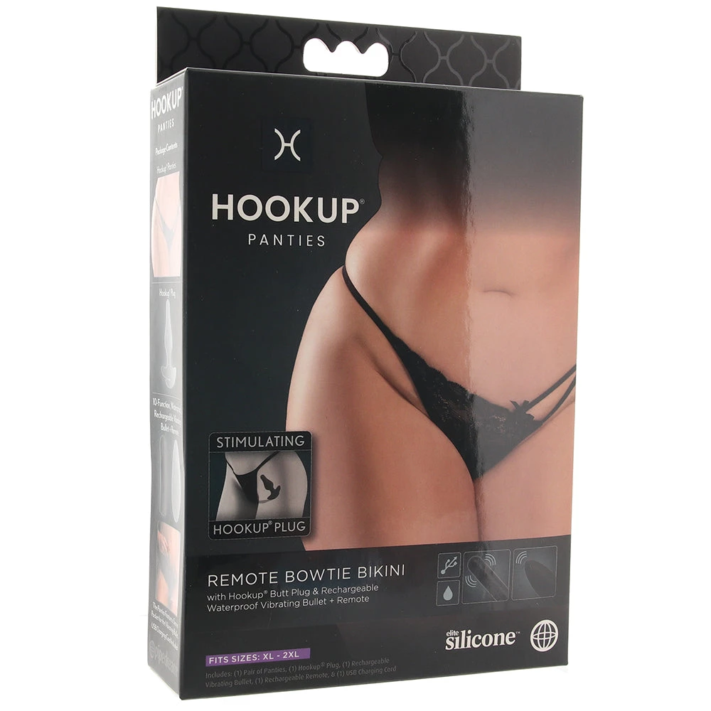 As you go about your day, or date, the plug will tug teasingly as you move, and, unless you want them to, no one will be the wiser. Pretty exciting, right? But wait, there’s more! Along with the Bowtie Bikini and the Hookup plug, you’ll also get a ten function bullet, plus a remote that’ll control it from up to 25 feet away. Slip the bullet into the crotch of your Bikini beforehand for some very sexy vibration potential. Both the remote and the bullet are USB rechargeable. Cable included.
