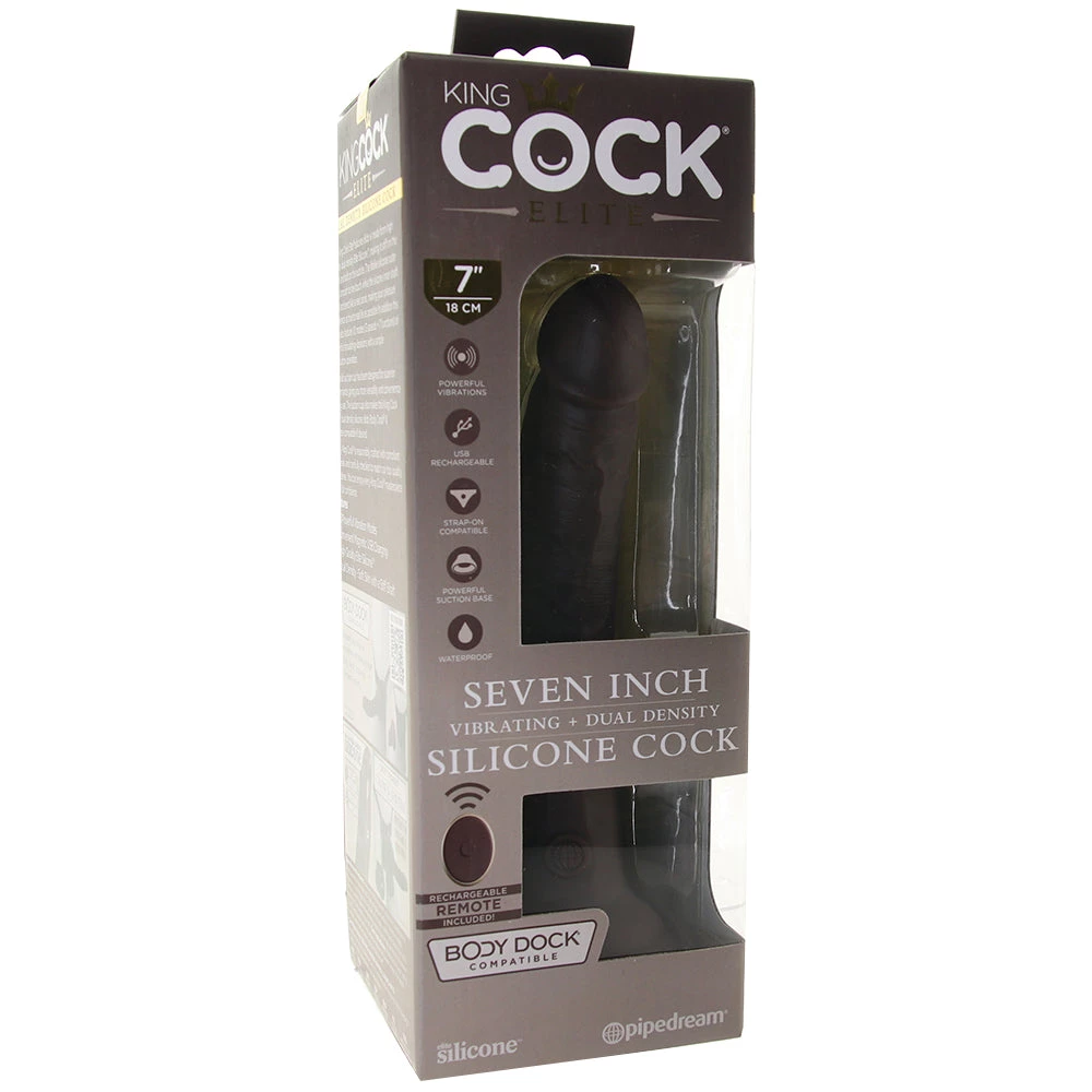 In Pipedream’s Elite silicone, the King Cock Elite Dual Density 7 Inch Silicone Vibe is body safe and easy to clean. Before and after playtime, wash it well with warm soapy water or a good toy care fluid/foam. This dildo can be safely used with any favorite water-based lubricant, but please keep it away from silicone lubes and other silicone toys. Waterproof.