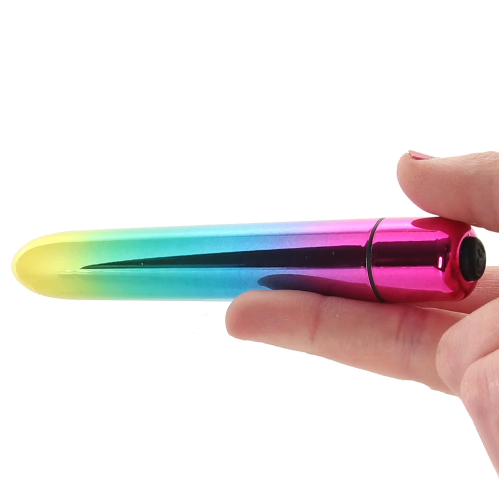 In body safe ABS plastic, Prism is perfect for pleasure seekers with sensitive skin. This vibe also happens to be a breeze to clean and maintain. Wash well before and after playtime using warm soapy water or a good toy care fluid/foam. The Prism Somewhere Over The Rainbow Vibe is compatible with any favorite lubricant. Requires 1 AAA battery, which is included. Waterproof.