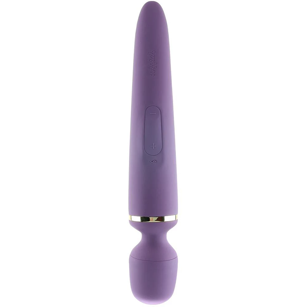 Of course, Satisfyer wouldn’t be Satisfyer without innovate stimulation options! Wand-er Woman comes complete with 50 possible super-powered vibration modes. There are 10 available vibration rhythms to choose from, each with 5 intensity settings. Easy to control and customize, the Wand-er Woman’s top (~) button activates the motor and cycles through the vibration options, while plus and minus buttons below control intensity.