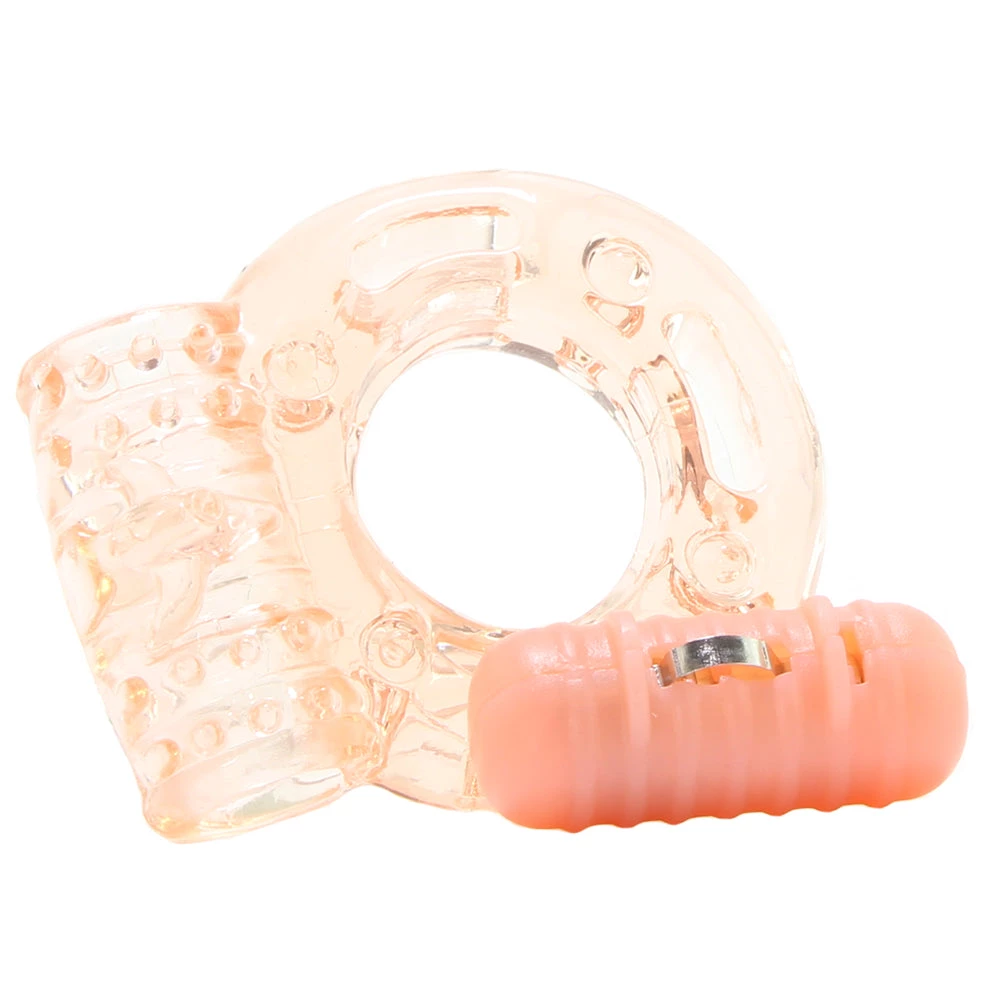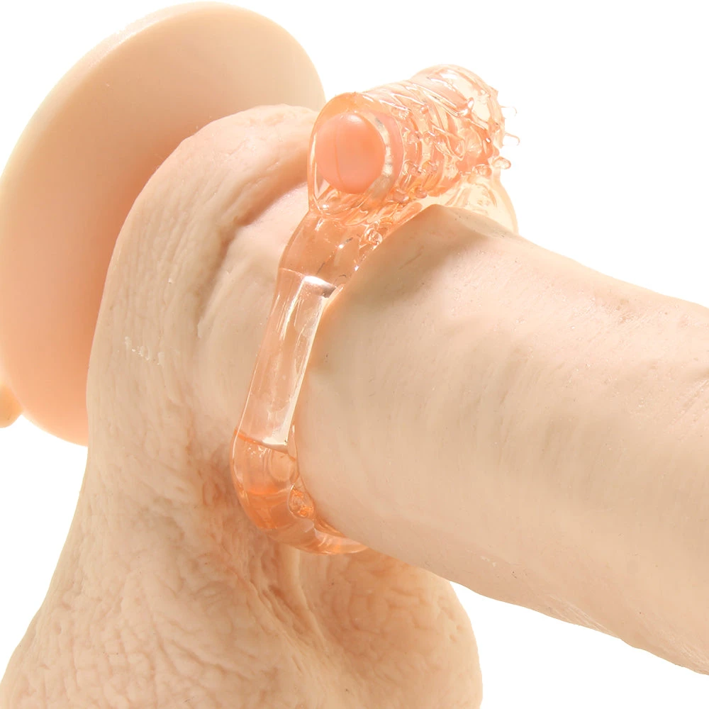 Up top, a frisky little vibe slipped through a tickly patch of texture buzzes and throbs against the clitoris (or perineum, depending on how it’s positioned) during sex. Single speed vibration activates with pressure and movement. The included mini vibe is disposable, lasting up to 30 minutes. When it quits, replace with a favorite bullet.