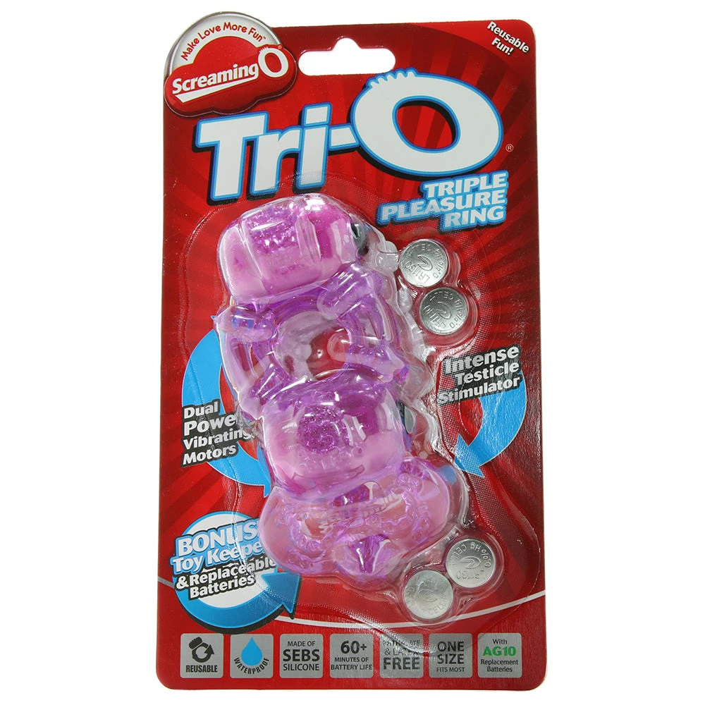Providing extreme pleasure to both mates while placing erection-enhancing pressure agasint strategic areas, the Tri-O features two rings, two textured contact points and tickly single speed vibration.