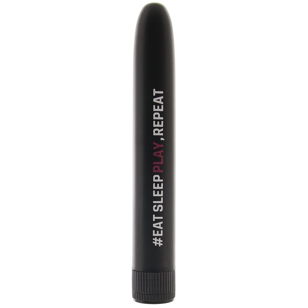 In nonporous ABS plastic, the #EatSleepPlayRepeat Vibe is body safe and extra easy to clean and maintain. Before and after playtime, rinse your vibe well under warm soapy water, or make use of a good toy care fluid/foam. Compatible with any favorite lube. Requires 2 AA batteries (sold separately). This vibe is splash-proof, but should not be fully submerged.