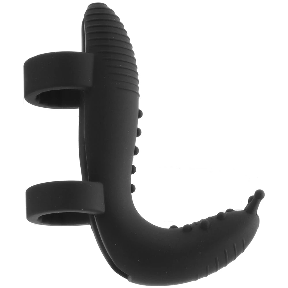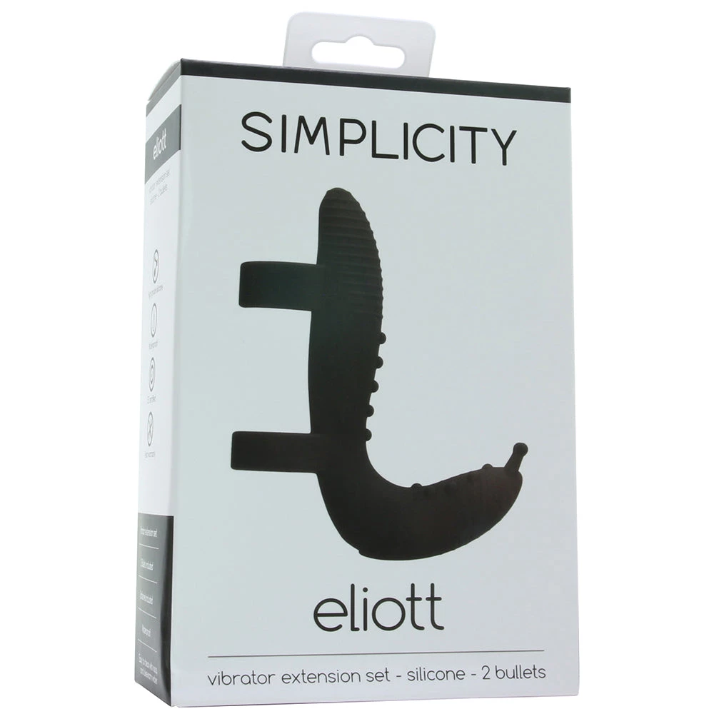 Shaped into a textured swell below an also-textured upstanding tickler creature and complete with two stretchy rings, Eliott slides onto many penetrative toys. Adding Eliott to the mix extends not only the thickness of the toy in question, but also its pleasure potential. Two bullet vibes slip into deep slots on Eliott’s underside, setting the whole toy (and potentially the toy it’s on) to vibrating.