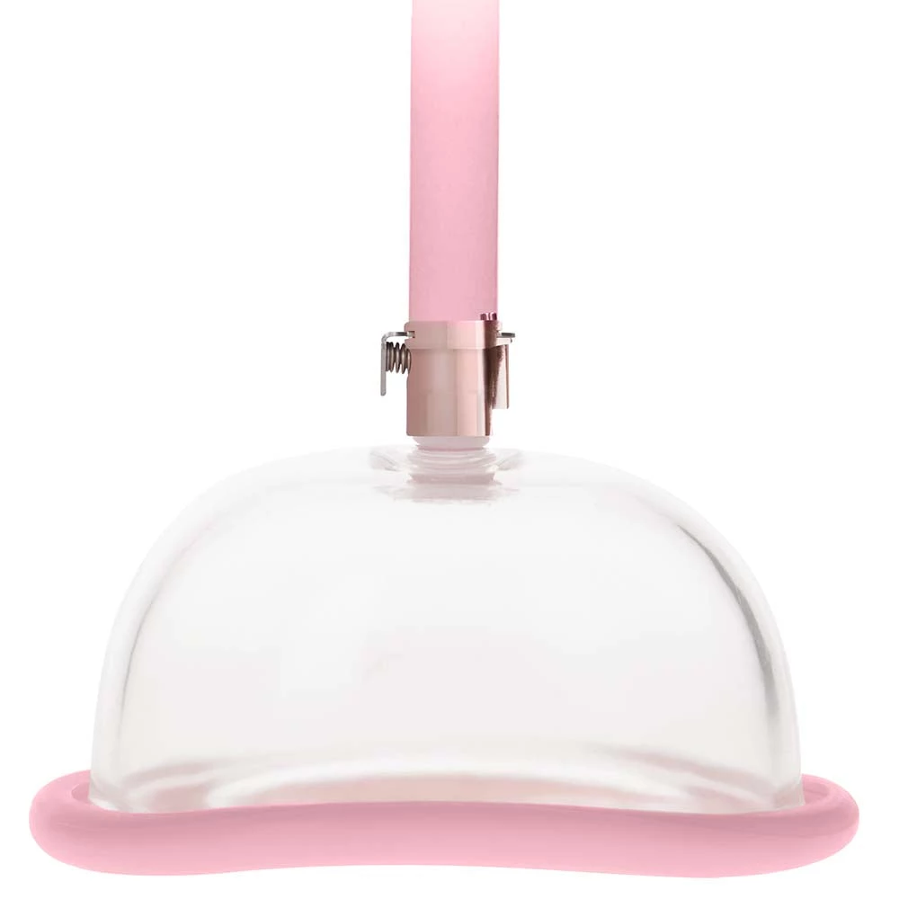To use, connect the cup to some flexible pink tubing and the automatic pump head controller. Next, press the soft silicone-rimmed cups into place over desired areas. Finally, activate three speeds of suction or manual suck/release using simple buttons using the controller. A dedicated quick-release button dissolves suction immediately.