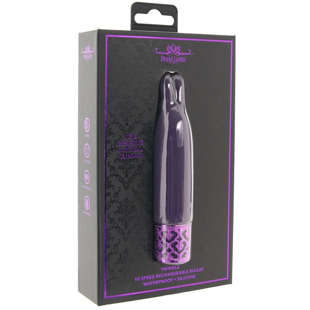 Ready to rule your bedroom – plus an entire kingdom of possible play spaces – with its petite, royal purple shape and amazingly versatile, sweet-spot focused flickering tip, the Royal Gems Twinkle Rechargeable Bullet Vibe is about to lay down the law – pleasure for one and all!