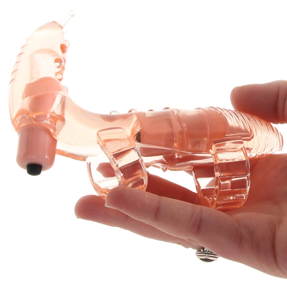 Shaped into a textured swell below an also-textured upstanding tickler creature and complete with two stretchy rings, the Sexpander slides onto penises and many penetrative toys. Adding the Sexpander to the mix extends not only the thickness of the toy or penis in question, but also maxes out the pleasure potential. Two mini bullet vibes slip into deep slots on the underside, setting the whole toy (and potentially the toy it’s on) to vibrating.