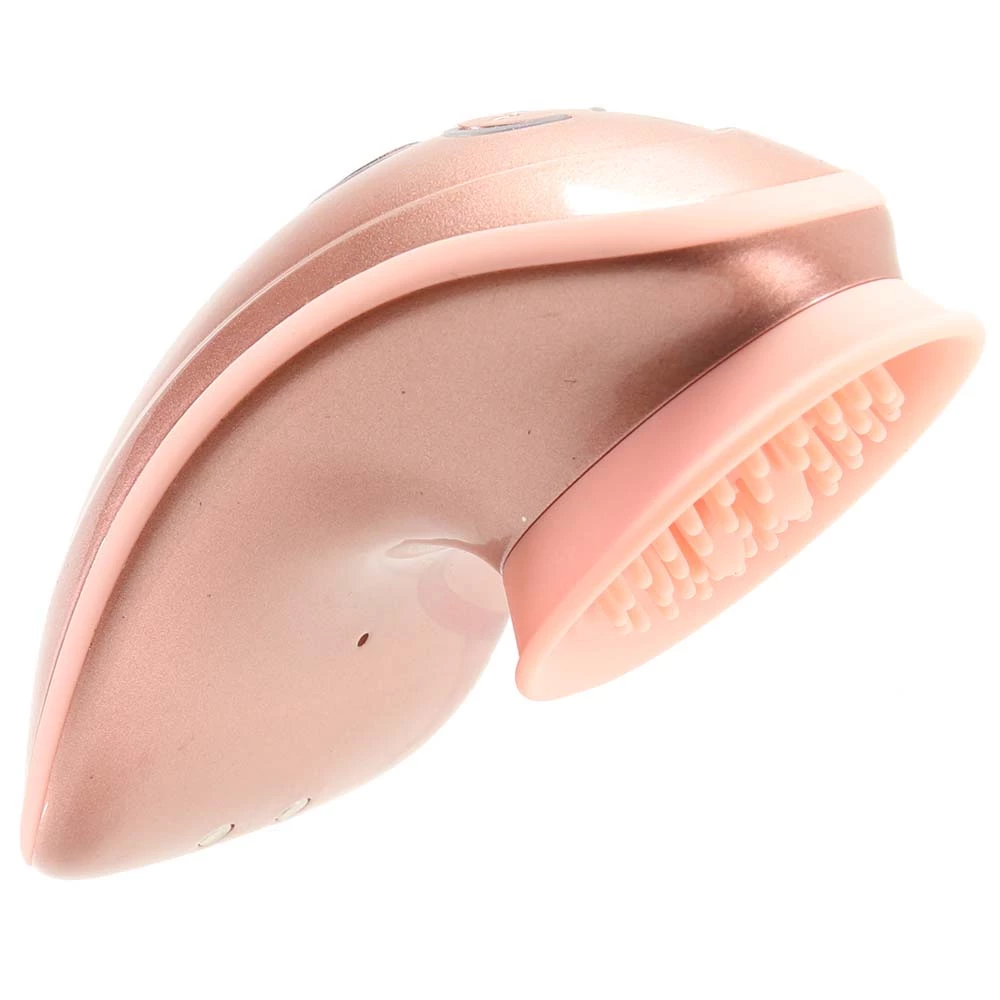 Two buttons on the rounded back of the rose gold Twitch independently activate and vary the pleasure options. Hold down the circle button for a few seconds to activate four modes of suction, and the squiggle button to do the same for ten modes of vibration.