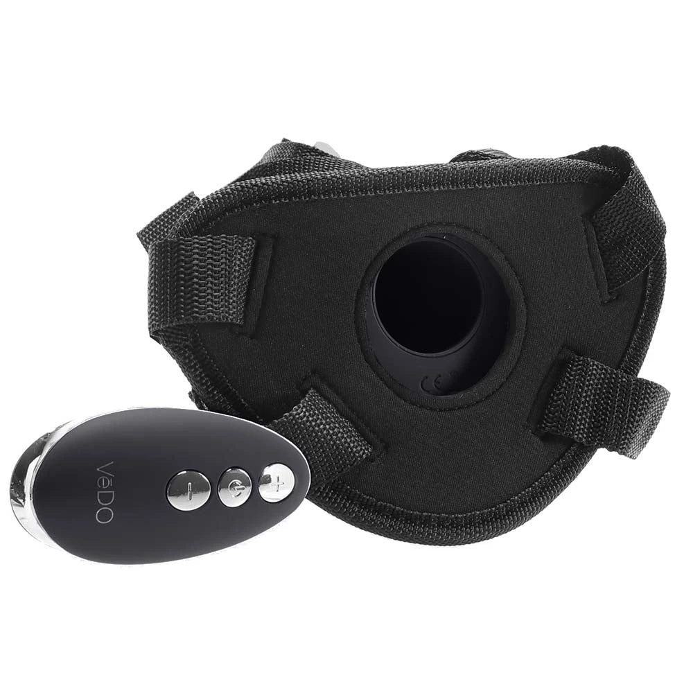 Strapping one on is fun for everyone! When you’re both in the mood for some strapped-on fun, you shouldn’t need to stress about whether or not a particular vibe or dildo will jive with your body and it’s parts. Luckily, VeDO’s Strapped Rechargeable Strap-On Vibe set was specially designed to fit anyone. Along with a simple, comfy harness, Strapped features a silky, hollow vibrating penetrator that’s stable enough to fit securely over innies, and slips comfortably over outies, too.