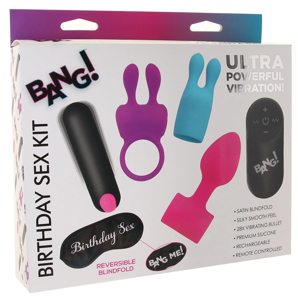 Love a really spectacular bullet vibe? Who doesn’t!? We especially love when that bullet comes along with a playful black blindfold and three unique silicone accessories. Need an example? Here it is: the Bang! Birthday Sex Kit.