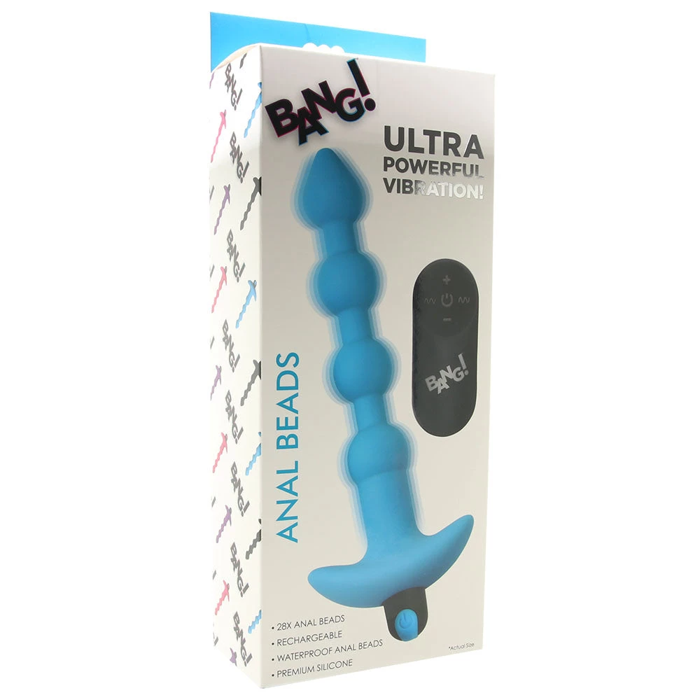 Once the Bang! Anal Beads are in position, you’re free to explore twenty eight (yes, 28!) modes of rumbly vibration. Vibration can be controlled using a button at the base of the (removeable!) core bullet, or with the included remote.