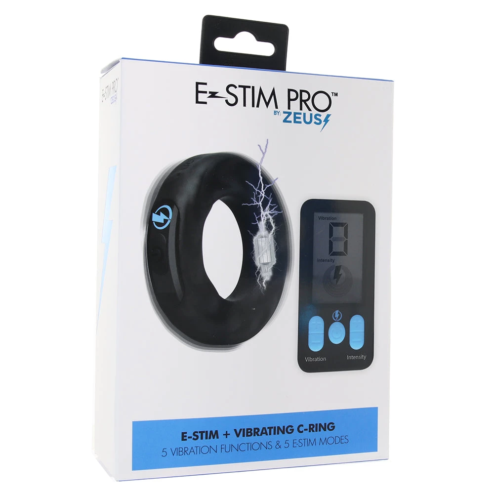 Slipping over your or your partner’s shaft (and looping around back of your/their balls, if you’d like) the E-Stim Pro Vibrating Cock Ring holds tight to provide lots of sexy, hard-on enhancing constriction. Grab hold of the included LED display remote to get things buzzing, throbbing and tingling.