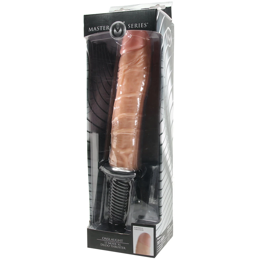 The definition of the word thrust is: ‘the driving force produced by a mechanism such as an aircraft engine’. We aren’t aviation experts over here (shocking, we know), but what we do know is that the driving force, or ‘thrust’, if you will, behind the Master Series Onslaught 13 XL Dildo Thruster was/is your or your partner’s extreme pleasure.