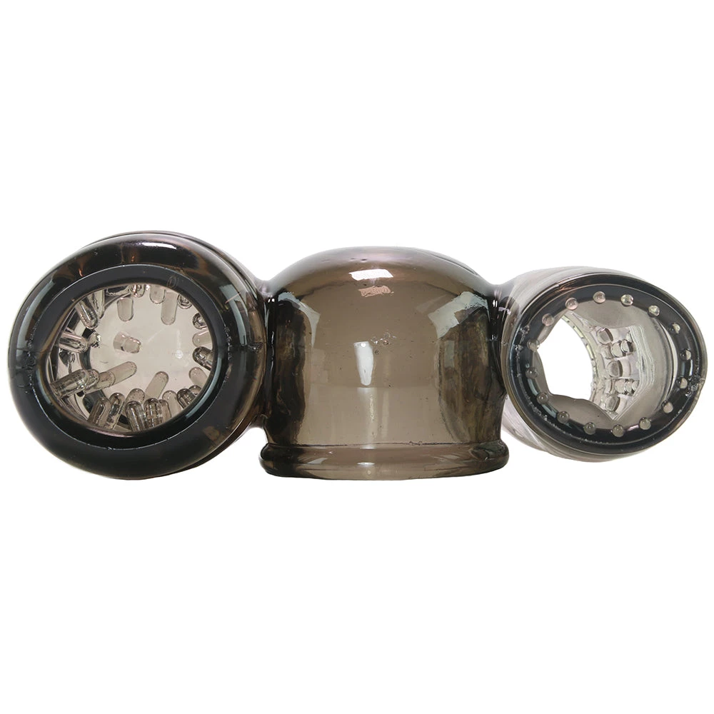 Two possible points of entry wait to buzz and throb along with vibration, the 3.75″ closed end cups the head of the penis, surrounding sweet spots with tons of soft ticklers while the 3.5″ textured open end can be stroked, twisted and turned over the entire shaft.