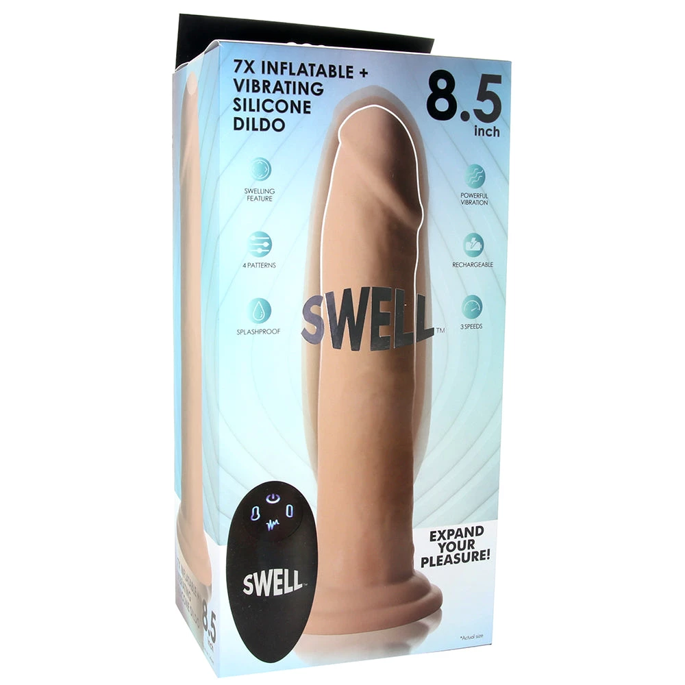 Sure, smaller can sometimes be better, especially when you’re just beginning to play with penetration, anal or otherwise. But, when you or your partner have earned your beginner’s badges and are ready to move on up to a larger or wider sex toy, the Swell Inflatable & Vibrating 8.5 Inch Dildo is the toy for you. Here’s the magic of this silky blow-up vibe – you can go from sleek and slim to thick and filling, all without changing toys!