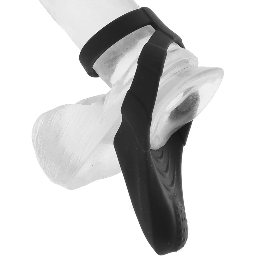 Slipping over your/your partner’s shaft and balls (or a dildo), the Cock Ring and Taint Stimulator features two connected stretchy silicone rings, each holding tight to help reign in and maintain a spectacular hard-on. Position the flexible, tongue shaped tickler in the path of your/their perineum, and play away!