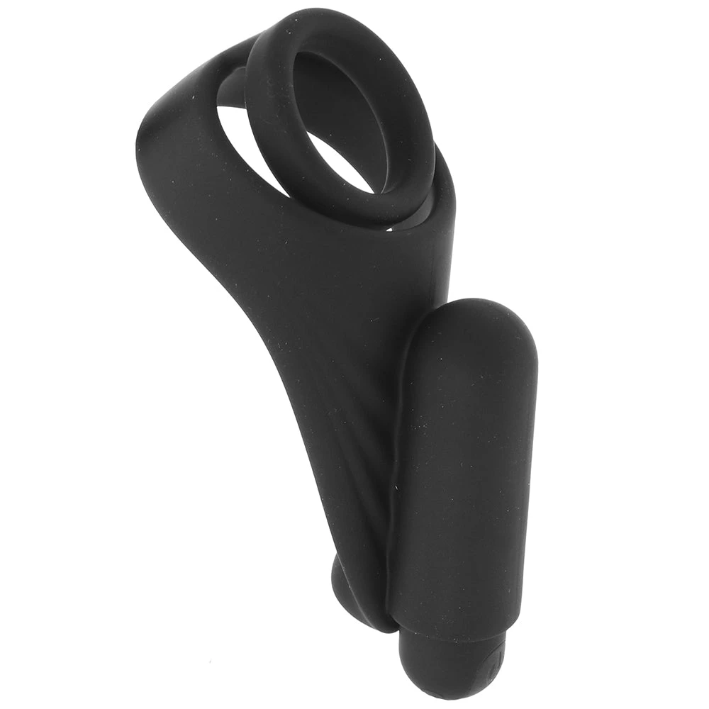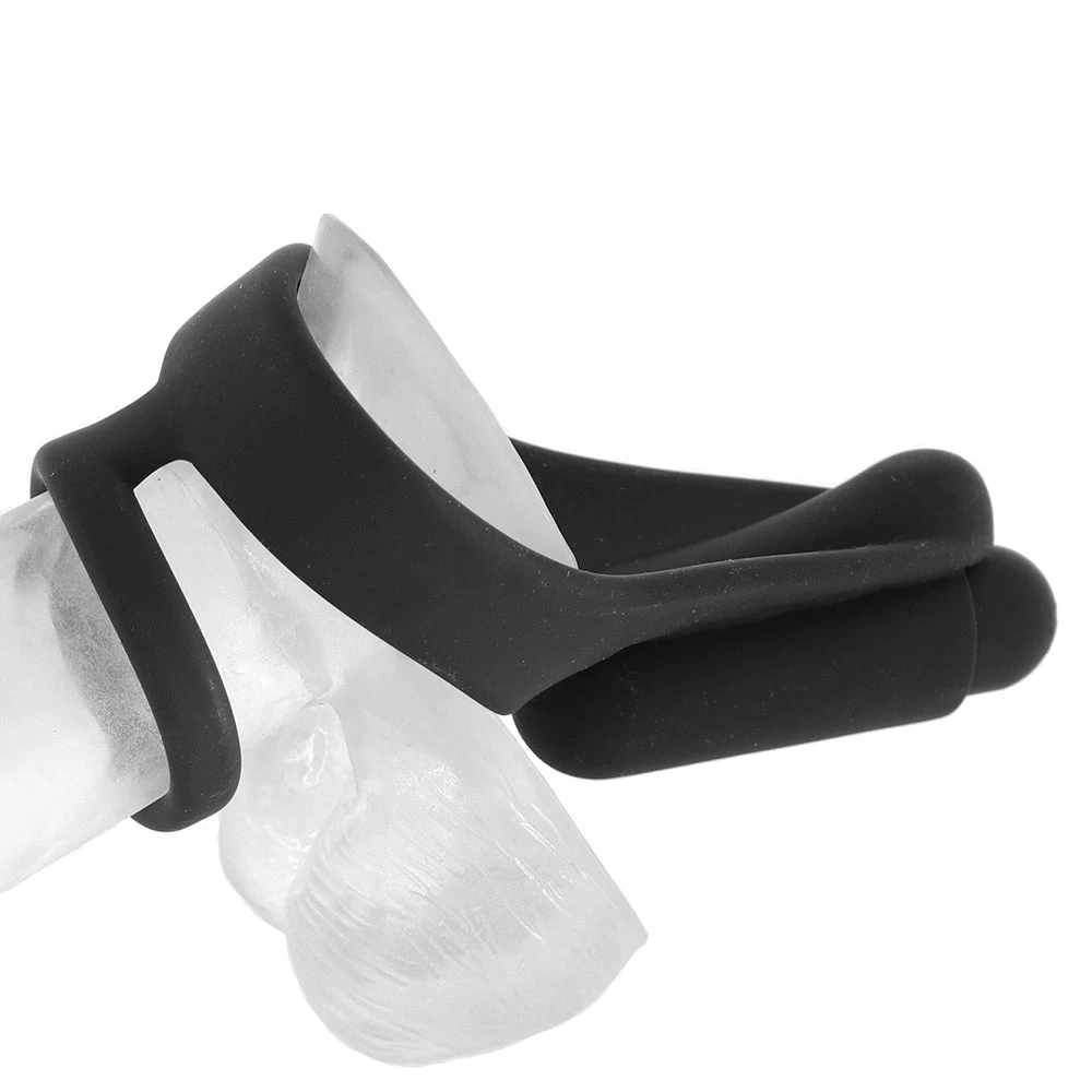 Slipping over your/your partner’s shaft and balls (or a dildo), this wearable Stimulator features two connected stretchy silicone rings, each holding tight to help reign in and maintain a spectacular hard-on. Position the flexible, tongue shaped tickler in the path of your/their perineum, and play away!