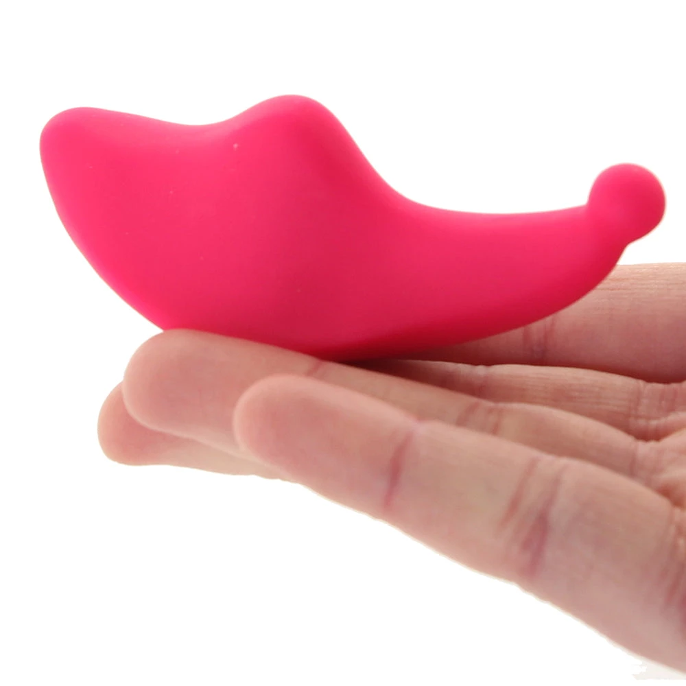 Snuggling sexily against your or your partner’s body when worn under your clothes, the versatile little vibe can also be held in hand and directed to clitorises, nipples, heads of penises and far beyond. The remote, like we mentioned above, houses a tiny microphone. Switch to voice mode with a button, and speak, blow or moan to activate vibration – it’ll work from up to 25′ away from the vibe.